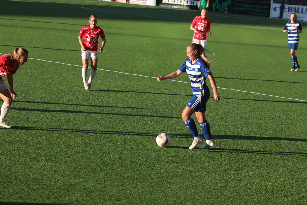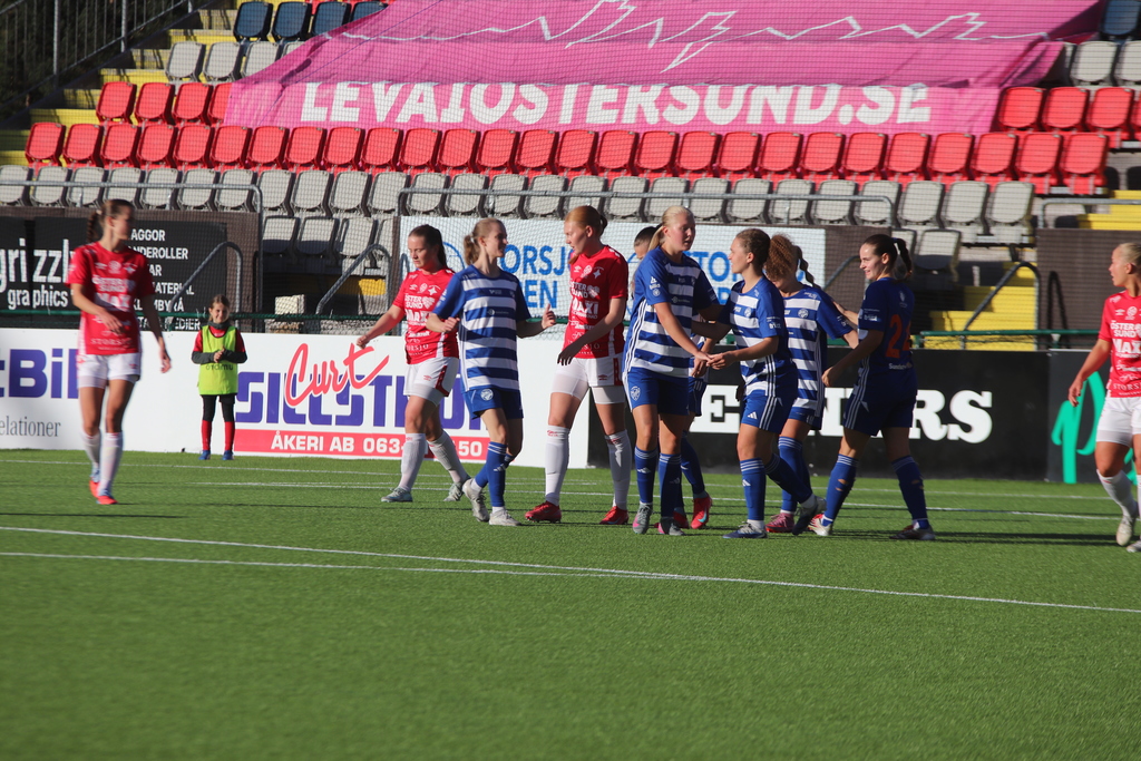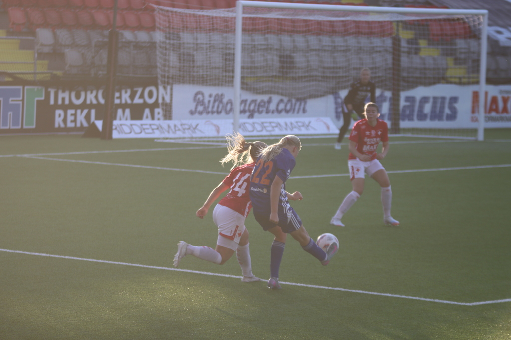 Lidingö börjar bra, får till några avslut, innan ledningsmålet sitter i 14:e matchminuten. Tuva tar hand om en hög boll i straffområdet och sätter bollen i nät.
