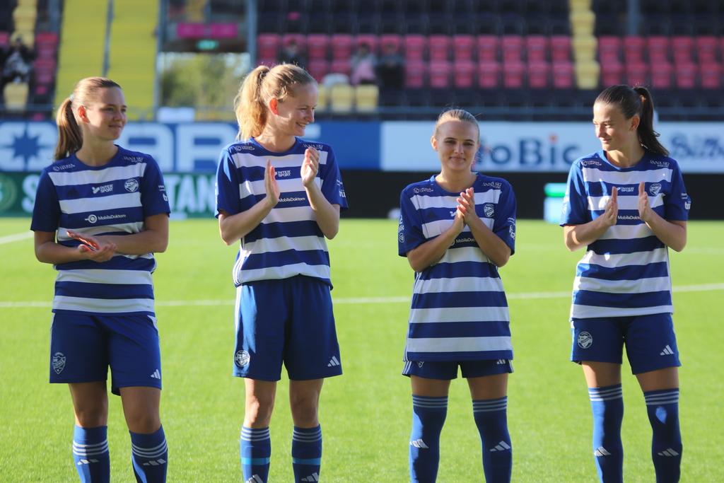 Den långa bussresan kanske sitter i benen, för det dröjer innan vi börjar skapa chanser, några hörnor och ett fint läge av Valentina i straffområdet som blockas till hörna.