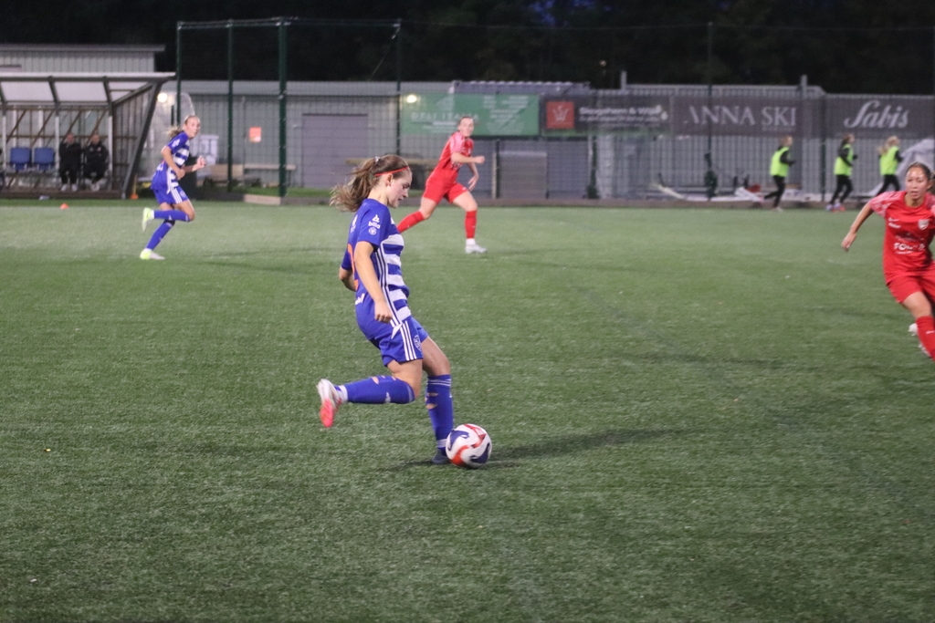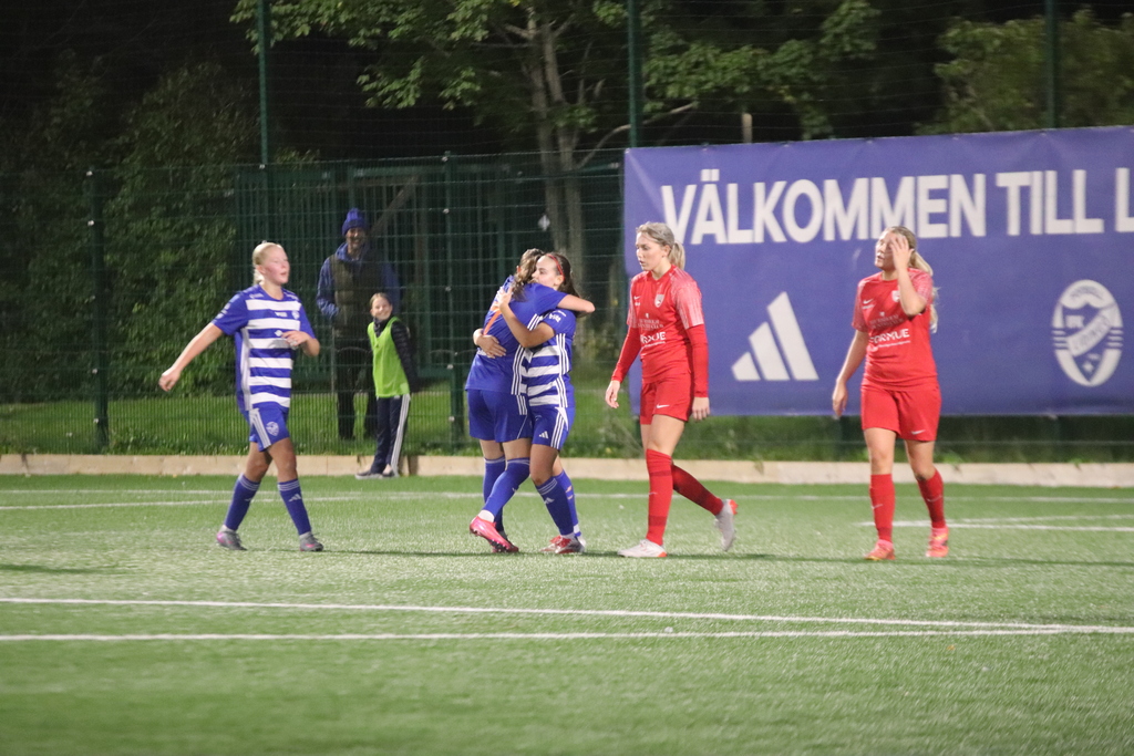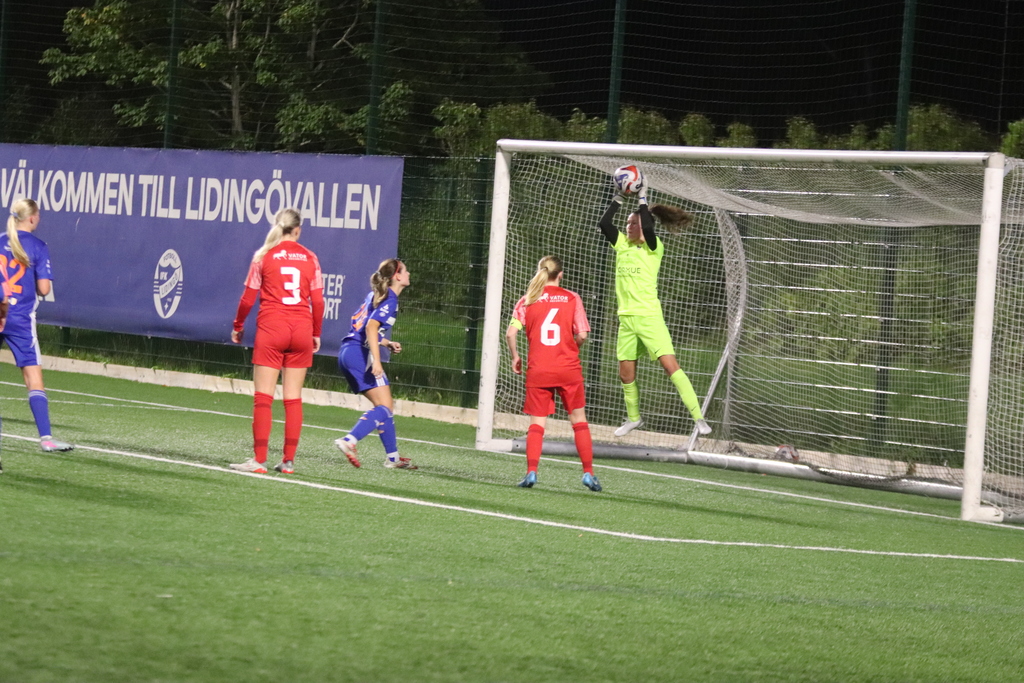 Men efter det sätter Lidingö fart på bollen och skapar ett antal chanser, ett friläge som bredsidas utanför och ett skott i ribbans överkant. Ja, det är nu riktigt bra fart på hemmalaget och en duktig Djursholmsmålvakt står för en rad avgörande räddningar. Men så i matchminut 40 sitter 1-1 där inspel i box från vänsterkanten och på en retur rakt ut så drar Nea på ett skott från strax utanför straffområdet i mål.