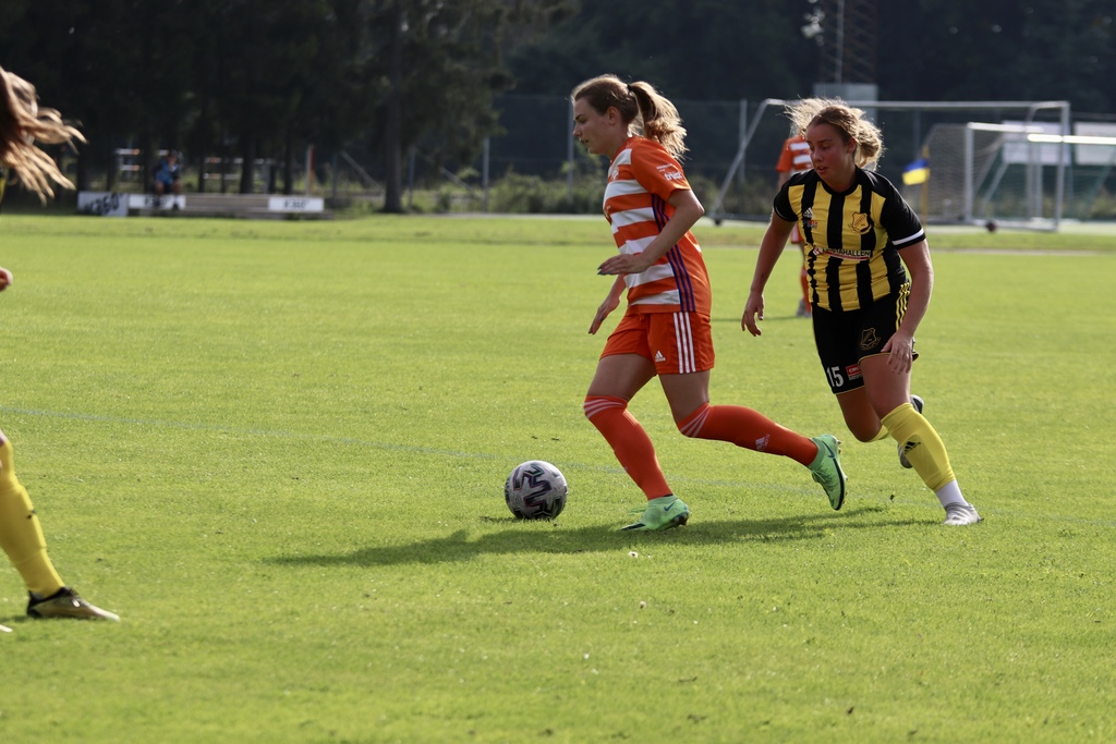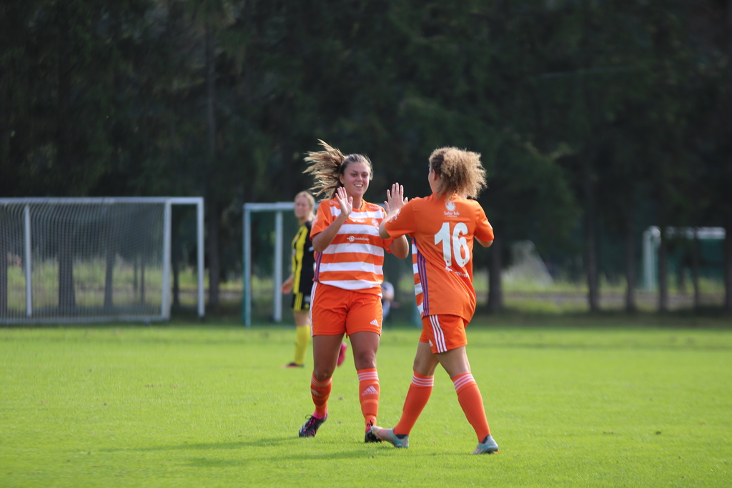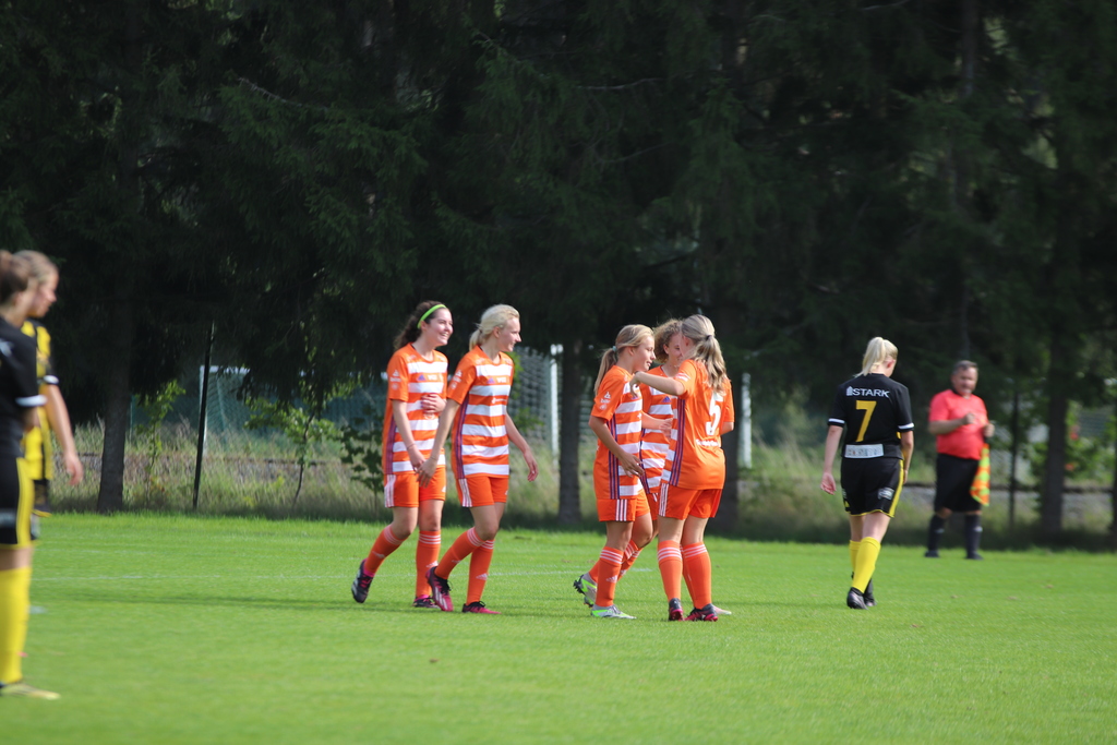 Vi har sagt att vi ska gå ut med samma fart i inledningen som mot GUSK och får också en fin chans ganska tidigt och några hörnor, men bästa chansen i inledningen är Vaksalas. Ett tungt skott utifrån som Fanny sträcker ut på och tippar till hörna. En hörna som blir trasslig men vi får loss bollen och efter det är det vi som kontrollerar spelet.