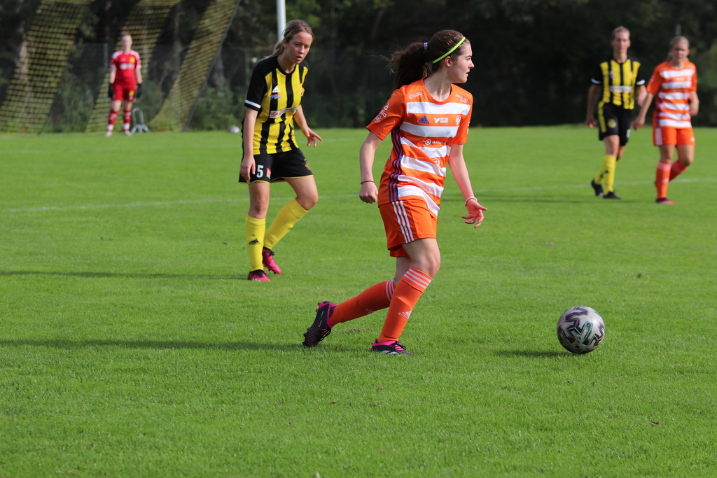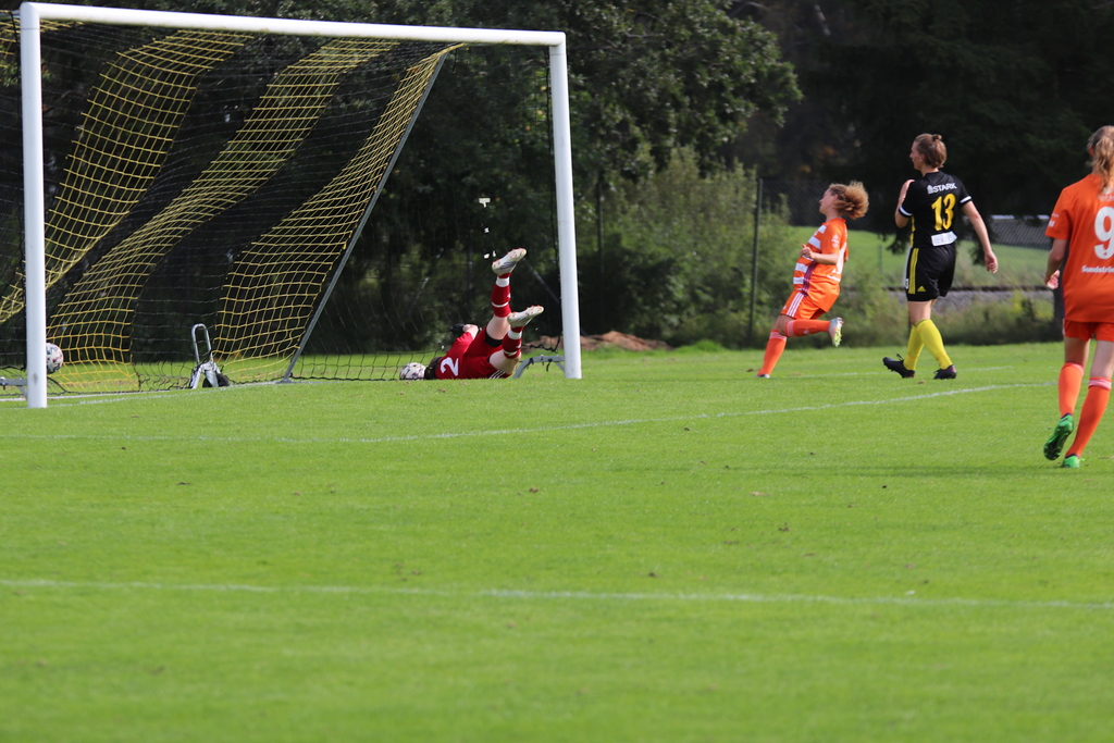 I andra halvlek tar vi över och trycker tillbaka Vaksala. Frispark i den 52:a matchminuten och Natalia lägger upp bollen, det är en bit utanför straffområdets vänstra hörn, men hon hittar bortre krysset. 0-3.