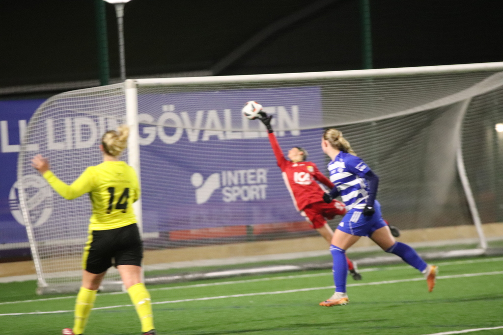 Rebecca gör 1-0 efter fem minuter assisterad av Mathilde, efter 17 minuters spel gör Mathilda 2-0 också hon på en framspelning av Mathilde.