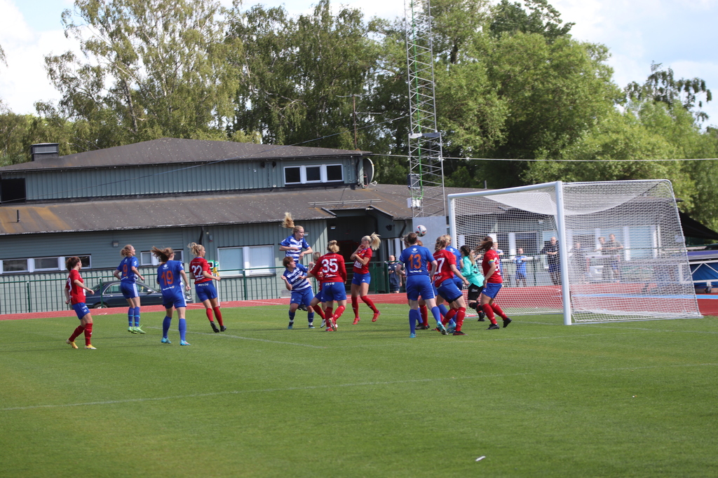 Spelet mattas något, men så kring den 25:e matchminuten skapar vi ett tryck och Blanca får på ett skott efter fint tillbakaspel i boxen och målvakten tippar bollen över ribban. Skott som styrs utanför på den hörnan. Så måttar Ebba en fint slagen hörna som Noelle hårt nickar in. 1-0.