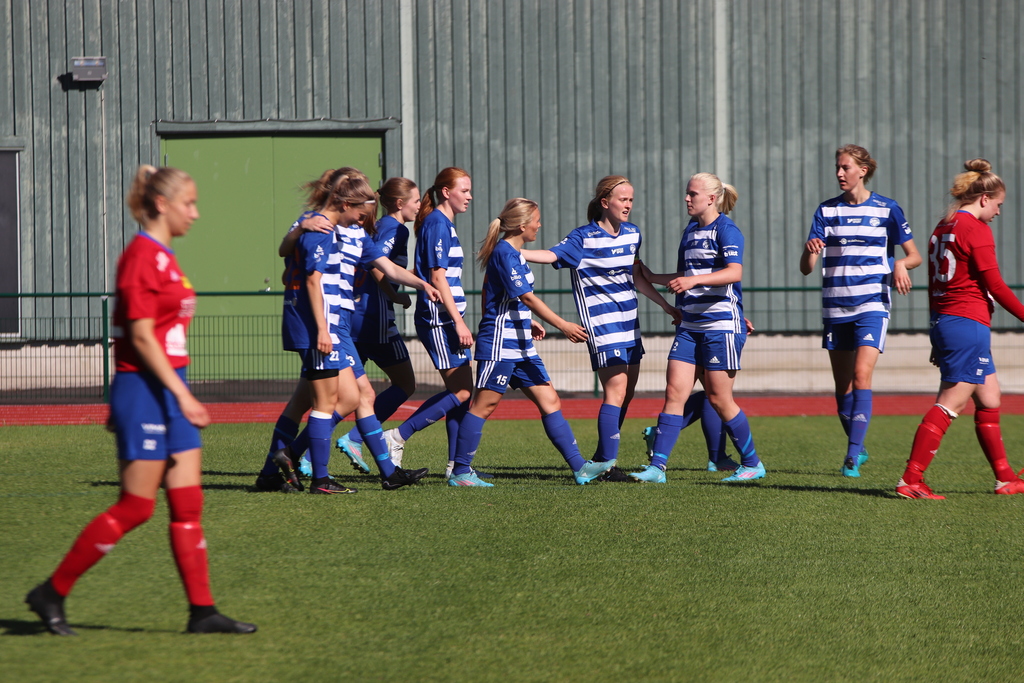 Det fina spelet fortsätter och matchens finaste sekvens kommer strax efter målet. Bollen levereras snabbt framåt, fem spelare inblandade och vi hittar in till Natalia som rullar ut på en fri Blanca i bortre delen av straffområdet, och hon skjuter med målvakten gör en fin parad. Mot slutet jämnas spelet ut en aning, men så kommer vi upp i några möjligheter där skotten inte hittar rätt. Så i sista matchminuten av första halvlek skjuter Blanca ett skott som målvakten får fingrarna på strax under ribban, men på ribbreturen är Liv framme och rakar in bollen. 2-0.