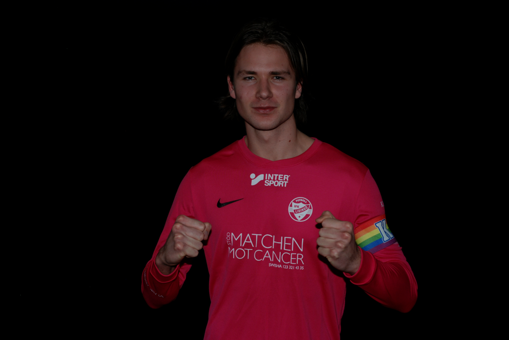 Under hela 2018 kommer IFK Lidingö FK att spela i rosa tröjor med "Stöd matchen mot cancer" tryckt över bröstet. På fotot ovan ser ni lagkaptenen Philip Göransson posera i den nya tröjan. Tanken med projektet är att samla in 1.000.000kr till cancerfonden och deras forskning. Vi hoppas att du som supporter också vill vara med och spela den matchen tillsammans med oss!
